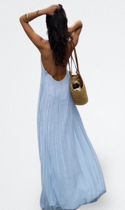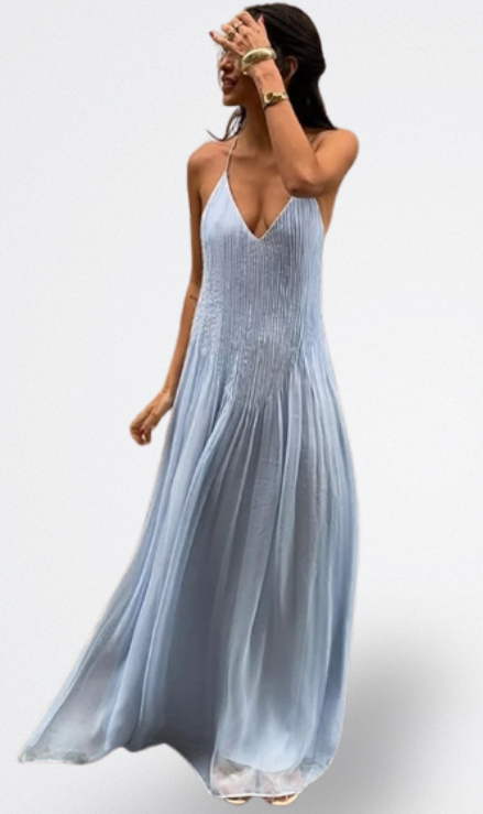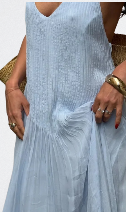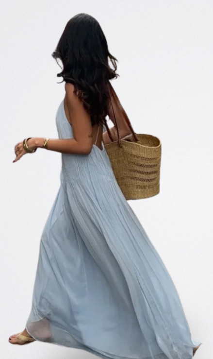 Imagina un vestido que se siente como el sol sobre tu piel — suave, ligero y con una feminidad sin esfuerzo. Ya sea paseando por calles adoquinadas con un bolso de rafia o bailando descalza en una fiesta al aire libre, este vestido lencero fluye como un poema. Los tirantes finos y su acabado luminoso te envuelven en una elegancia sutil y relajada.