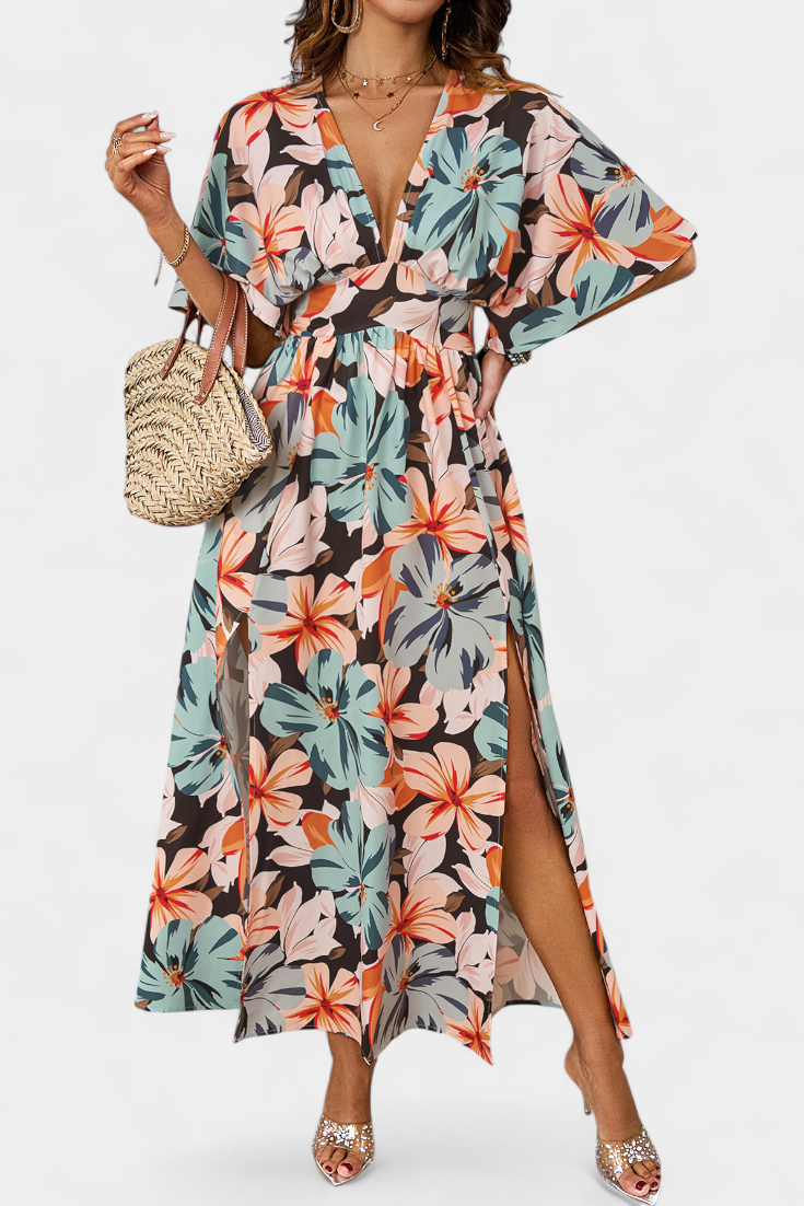 Estilo envolvente con un aire de frescura veraniega. El vestido Julie deslumbra con su estampado floral vibrante, escote cruzado pronunciado y abertura lateral que aporta movimiento y encanto. Diseñado para quienes buscan destacar con elegancia en climas cálidos y ocasiones relajadas.