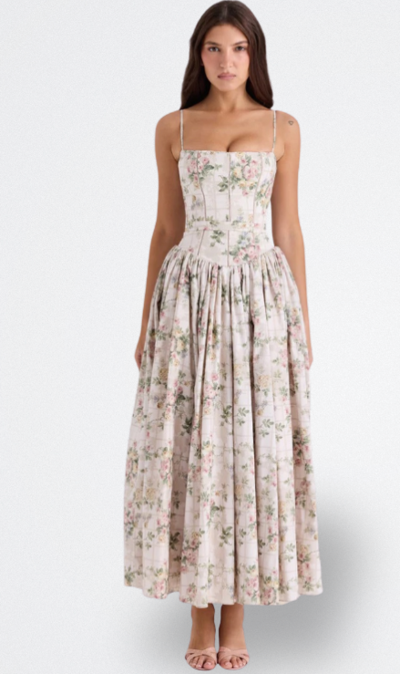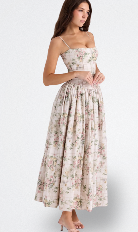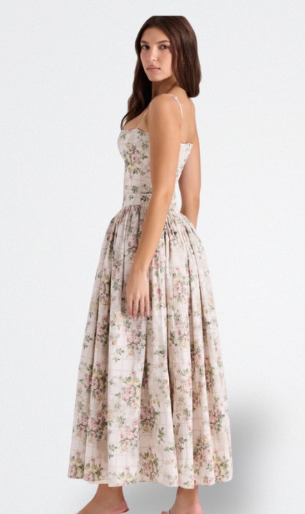 El Cielle Dress es coqueto, femenino y favorecedor sin esfuerzo. Con su cuerpo tipo corsé y delicado estampado floral, está hecho para días soleados y atenciones bonitas.
