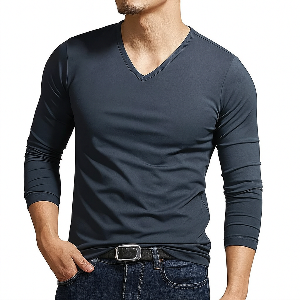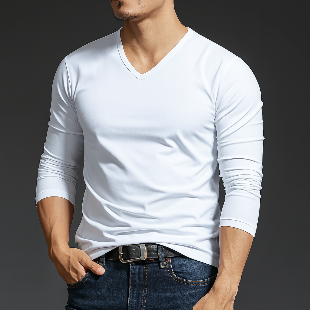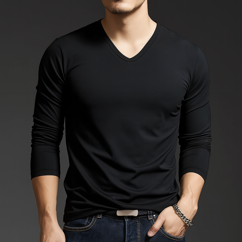 La Camiseta Esencial Vibe combina estilo minimalista con máxima versatilidad. Con su clásico cuello en V y ajuste moderno, esta prenda de manga larga es ideal para cualquier ocasión — desde looks casuales hasta outfits más pulidos bajo chaquetas o blazers. Su tejido suave, elástico y ligero garantiza comodidad durante todo el día. Disponible en varios colores neutros y atemporales para adaptarse a todos los gustos y estilos.
