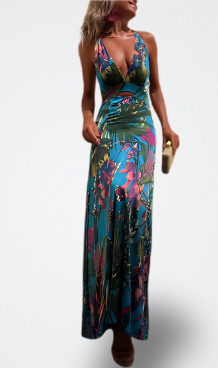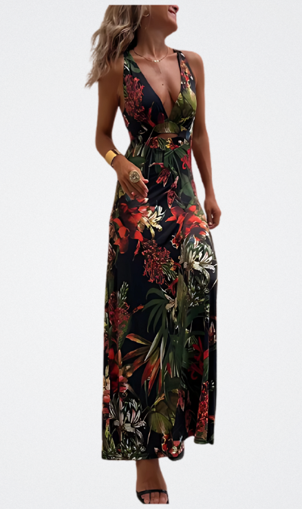 El escote profundo y la cintura entallada realzan tu figura con confianza