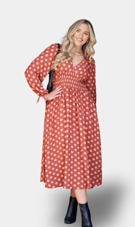 • Corte favorecedor: Escote en V pronunciado que estiliza el cuello, y falda evasé que equilibra la silueta manteniendo un ajuste elegante.